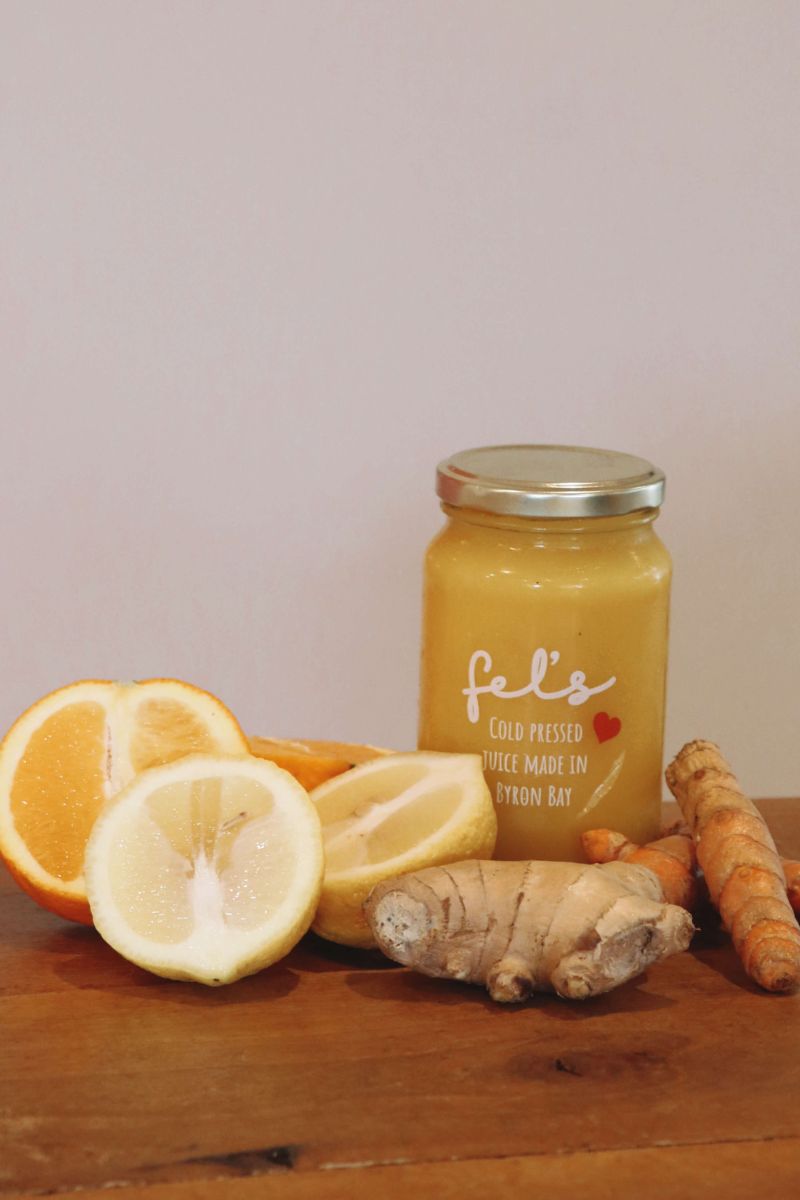 - 1 x Immune Cold Pressed Juice: orange, ginger, lemon, turmeric & echinacea. High in antioxidants, vitamin c , supports skin health & immune function.